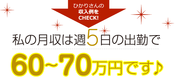 「週5の出勤で、月に60~70万円くらいです。1日だと、たぶん、3~4万円くらいかな? 時給の他に、指名バック、ドリンクバックが加算される感じですね。」